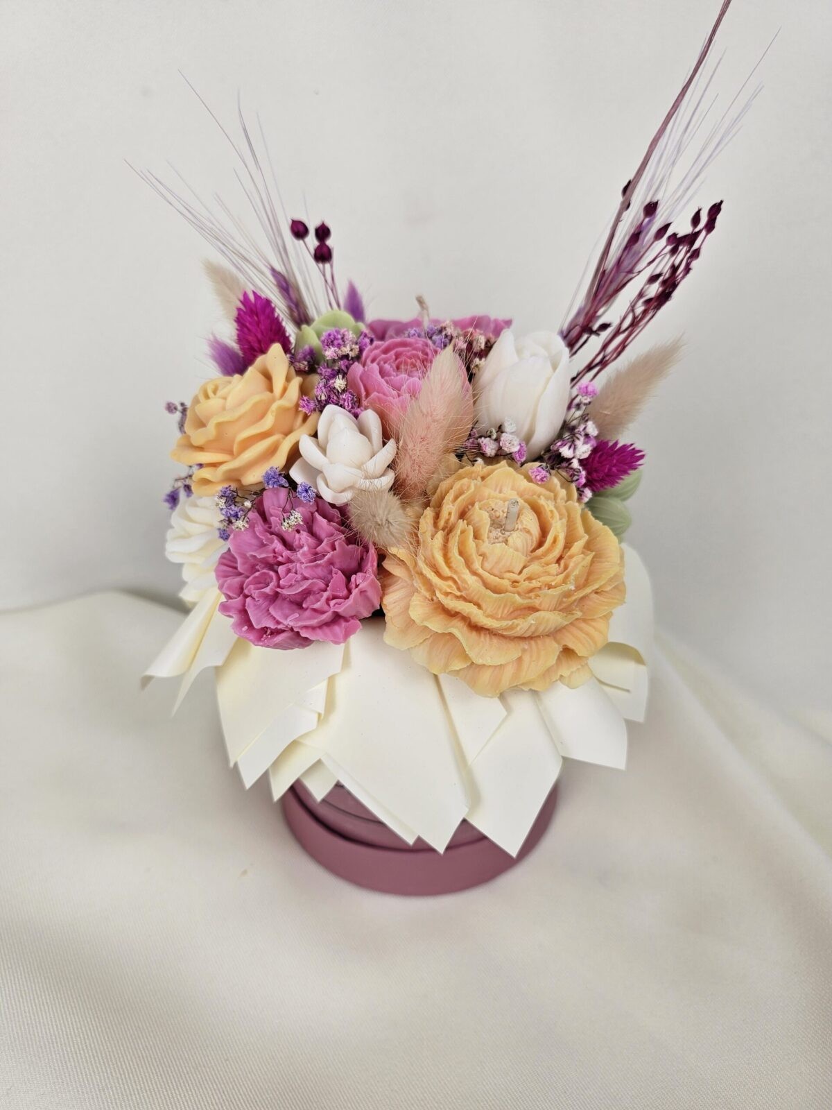 • Urodziny i inne okazje – Candle Flower Box to idealny prezent na każdą okazję, który zachwyci zarówno wyglądem, jak i zapachem.
