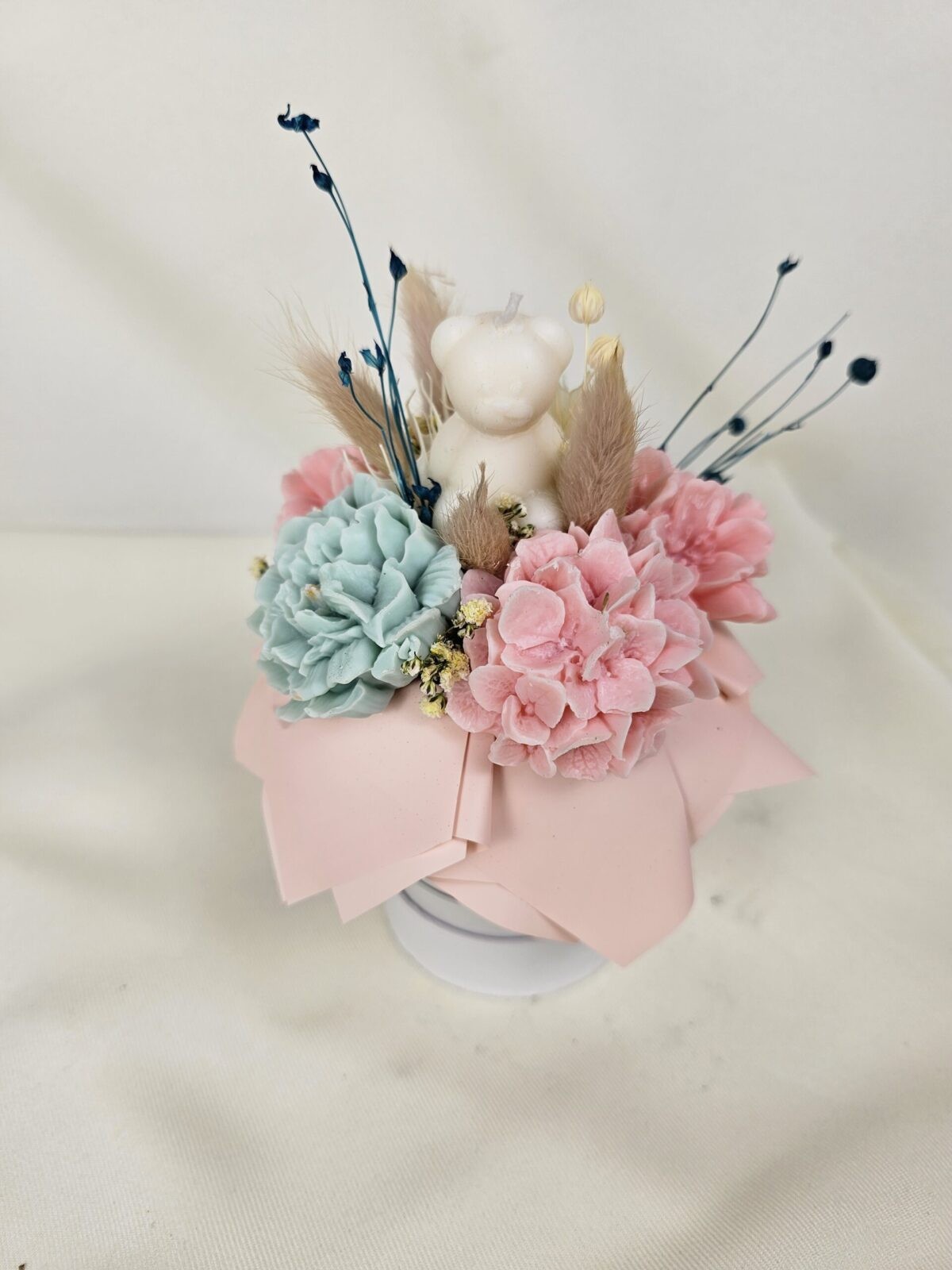 Odkryj nasz wyjątkowy Candle Flower Box z misiem, który łączy w sobie naturalne świece sojowe oraz delikatny susz kwiatowy, tworząc przytulną atmosferę w Twoim wnętrzu. Ten uroczy zestaw doda ciepła i charakteru każdemu pomieszczeniu.